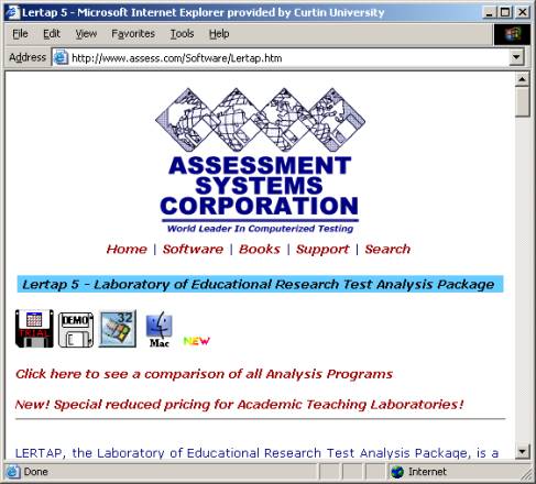 Lertap 5 is distributed by ASC, Assessment Systems Corporation, in the United States. The Internet address for ASC is: www.assess.com. It is not possible to obtain the Lertap 5 system from any other source.