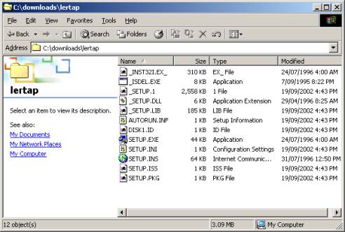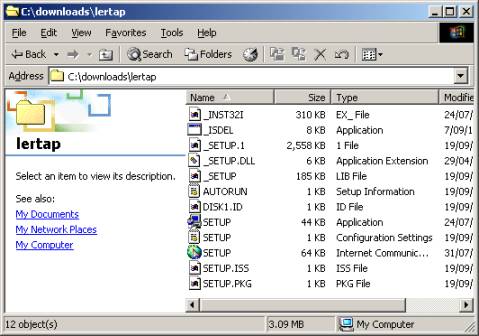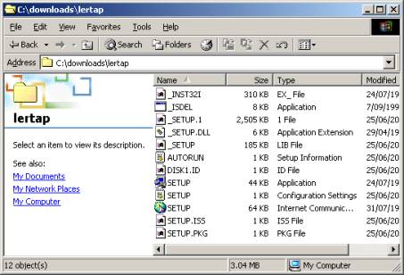 Then, after extracting the third zip file, open up the C:\downloads\lertap folder, or whatever you called it, and run SETUP, as explained above.